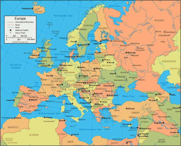 Great Political map of Europe – click the image to see the full sized version.